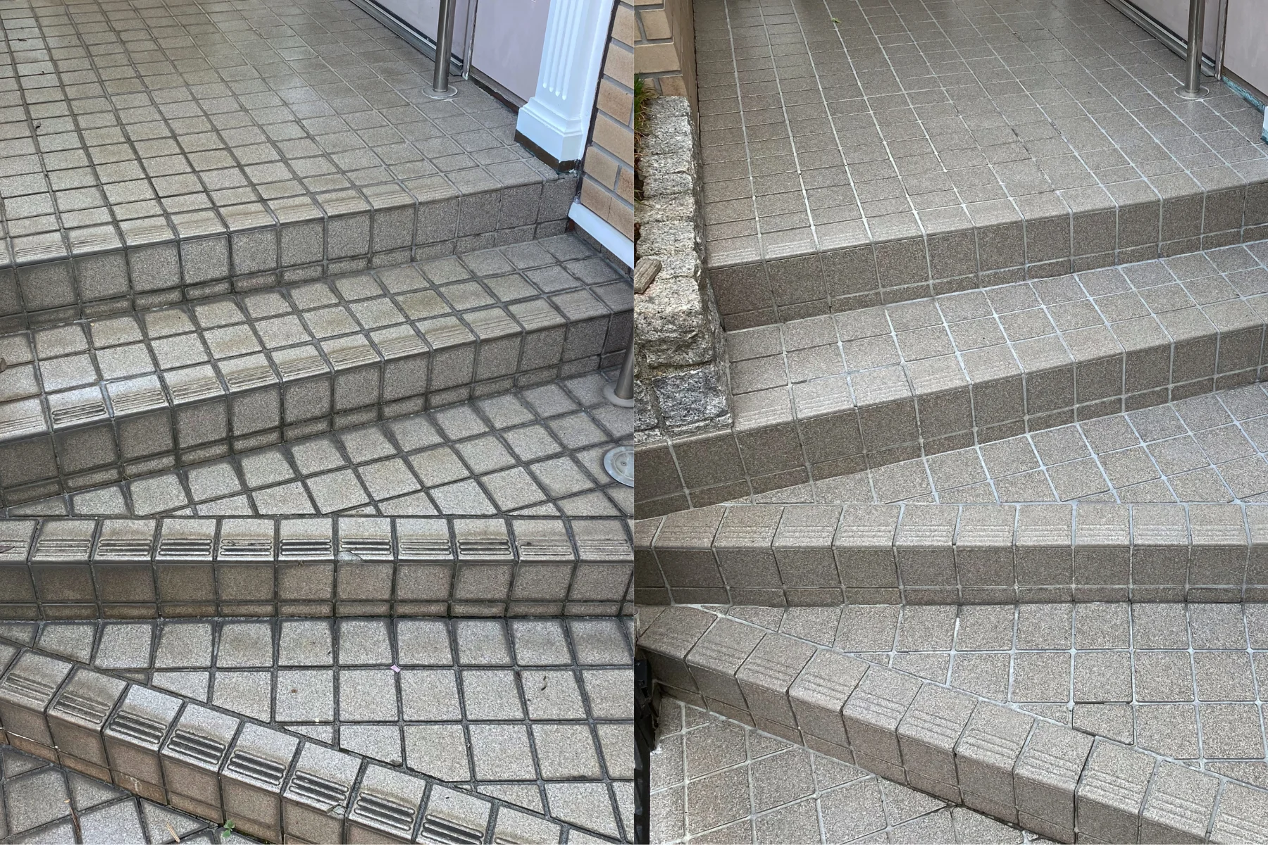 Use of porcelain tiles, which are highly durable, water-resistant, and less porous than ceramic, making them ideal for both indoor and outdoor high-traffic areas.